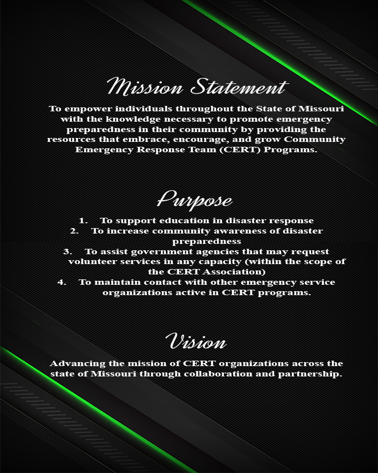 The Community Emergency Response Team (CERT) program educates volunteers about disaster preparedness for the hazards that may impact their area and trains them in basic disaster response skills, such as fire safety, light search and rescue, team organization, and disaster medical operations. CERT offers a consistent, nationwide approach to volunteer training and organization that professional responders can rely on during disaster situations, allowing them to focus on more complex tasks.