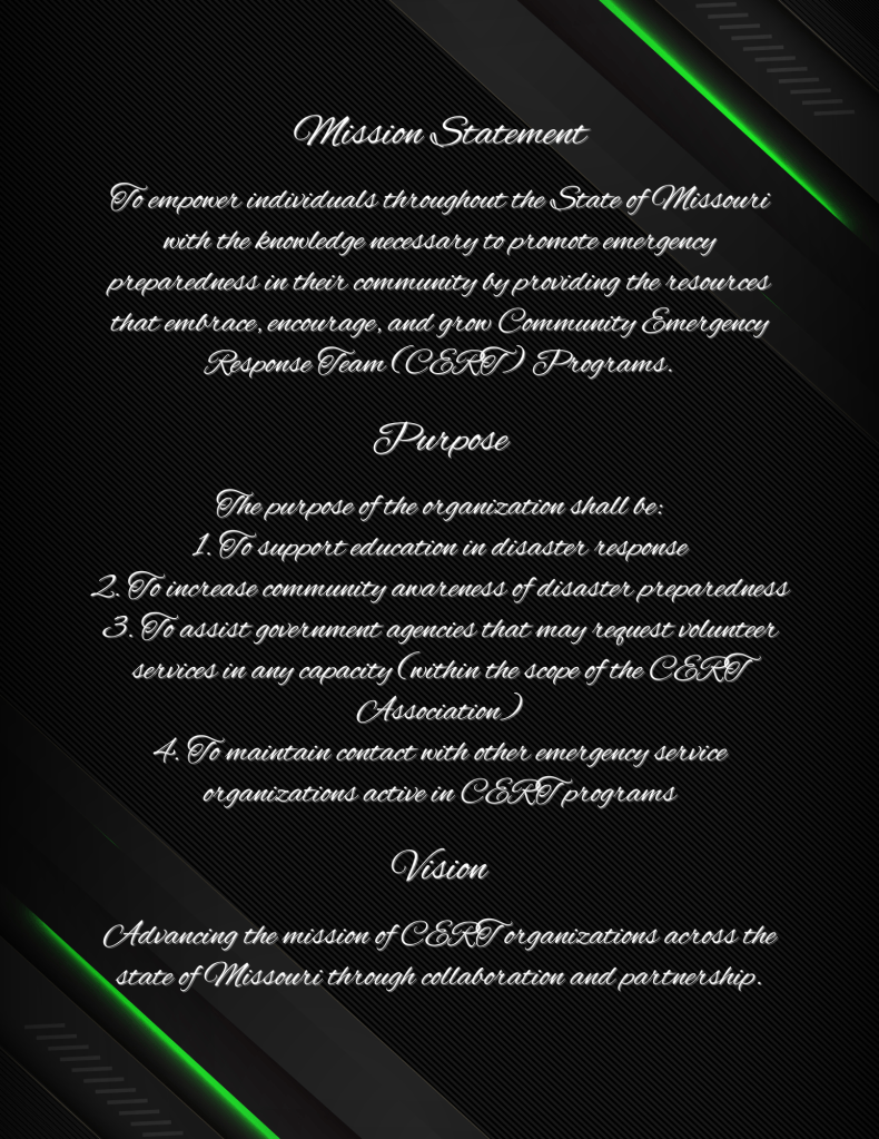 The Community Emergency Response Team (CERT) program educates volunteers about disaster preparedness for the hazards that may impact their area and trains them in basic disaster response skills, such as fire safety, light search and rescue, team organization, and disaster medical operations. CERT offers a consistent, nationwide approach to volunteer training and organization that professional responders can rely on during disaster situations, allowing them to focus on more complex tasks.