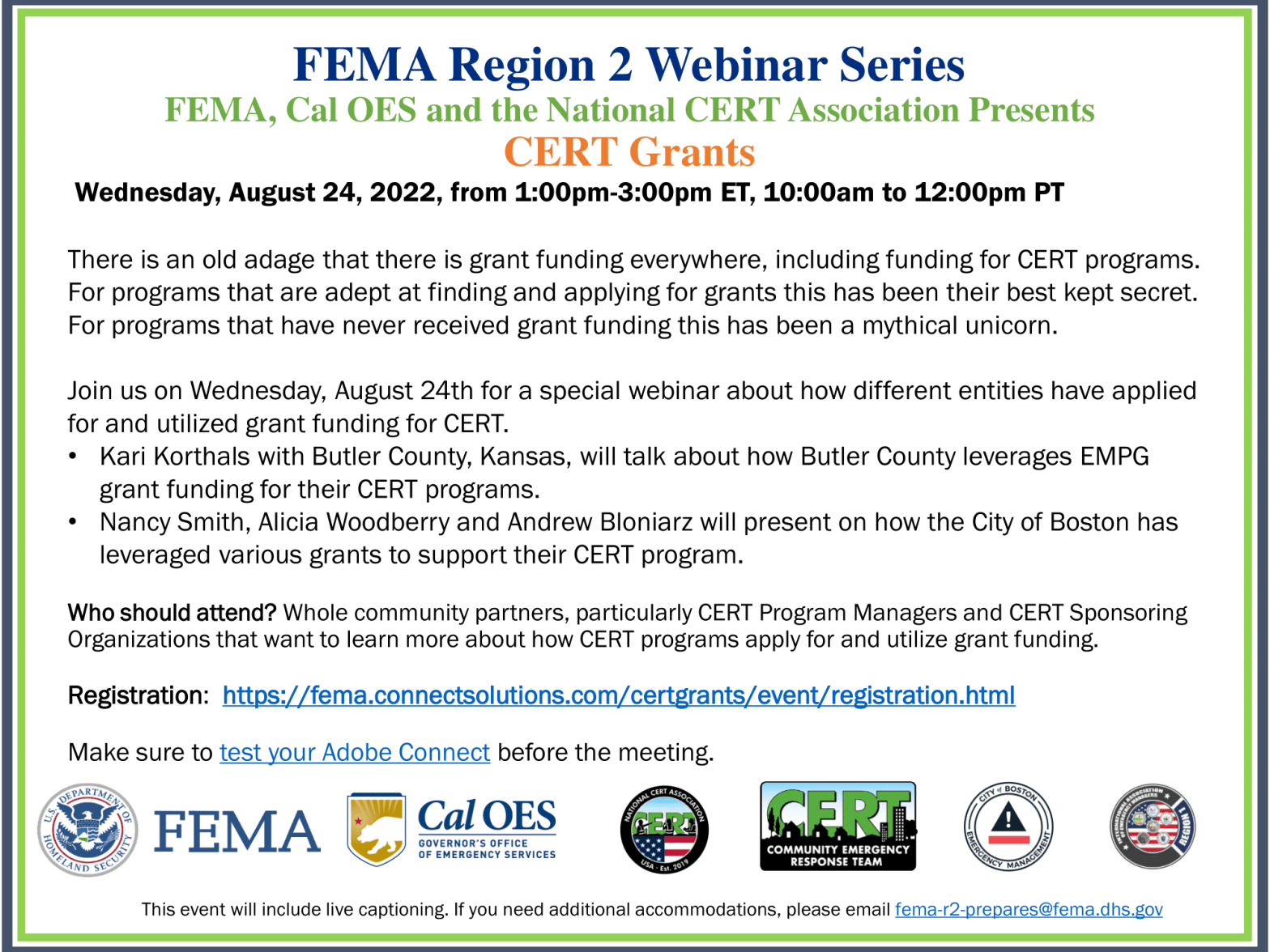 CERT Grants Webinar Coming Up!